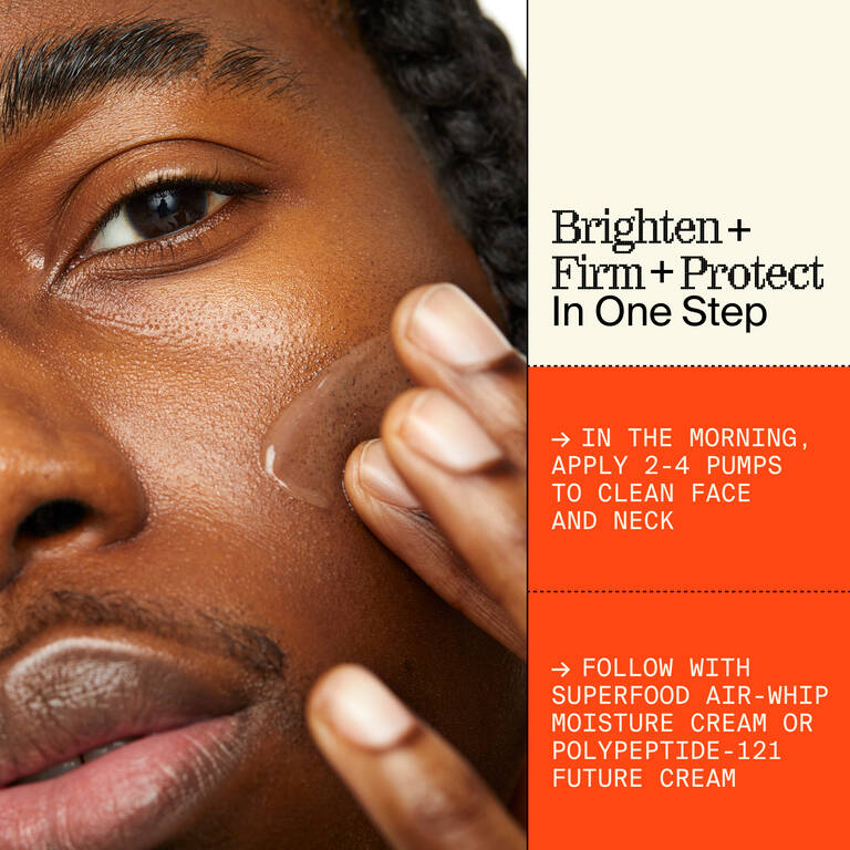 Este suero de vitamina C al 15 % de grado clínico, el primero de su tipo, está enriquecido con cafeína derivada de plantas como la yerba mate y la guayusa para iluminar de inmediato, reducir visiblemente la hinchazón matutina e hidratar.