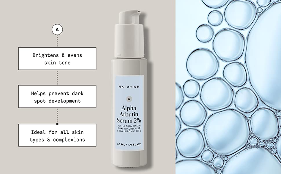 - Tono uniforme de piel, complejidad radiante: este suero combina un nivel altamente eficaz de alfa arbutina, junto con niacinamida y limón, para desvanecer la apariencia de manchas oscuras causadas por inflamación y factores estresantes ambientales.