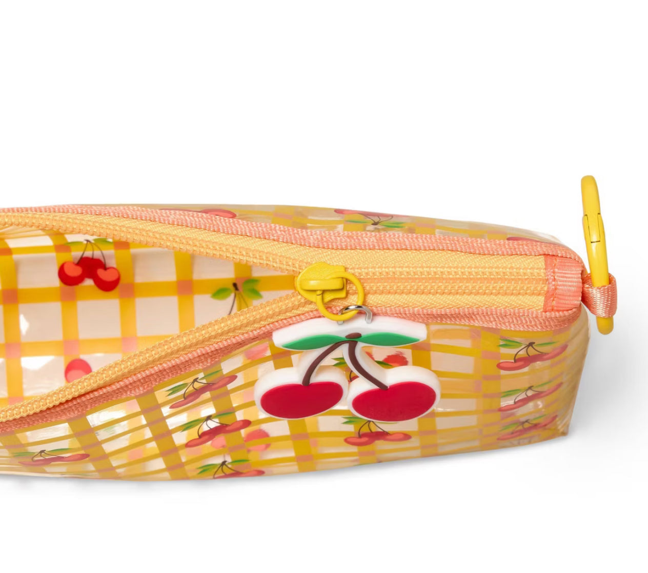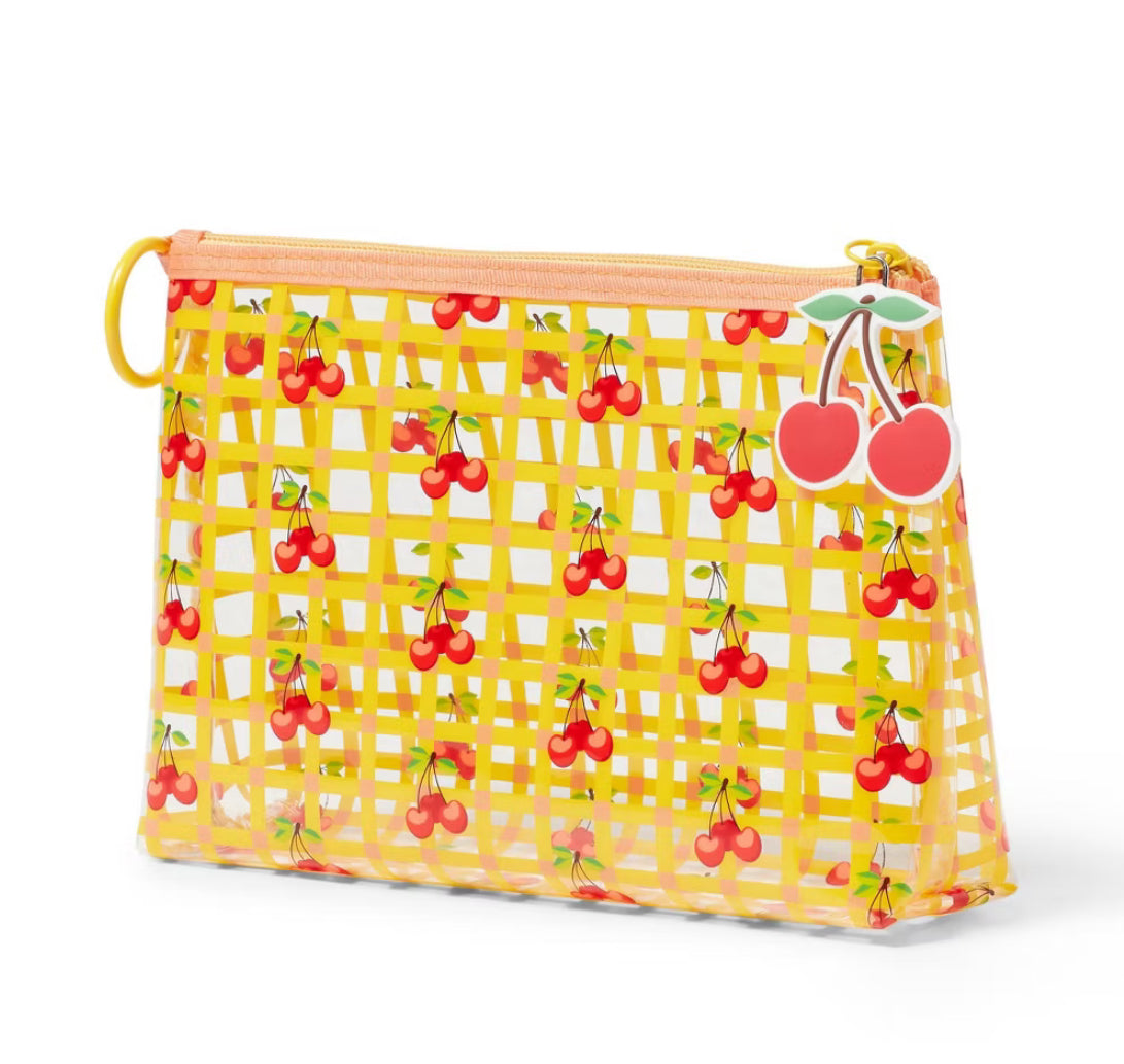 Actualiza tu colección de accesorios con el estilo afrutado de la bolsa de iconos de cereza y mandarina. Esta bolsa presenta un estampado a cuadros con ilustraciones de cerezas y/o rayado + un dije de cereza y/o mandarina para un aspecto brillante. Hecha de plástico, esta bolsa tiene un cierre de cremallera para ayudar a mantener el contenido seguro. Puede adjuntarlo fácilmente a su bolso con el cierre.