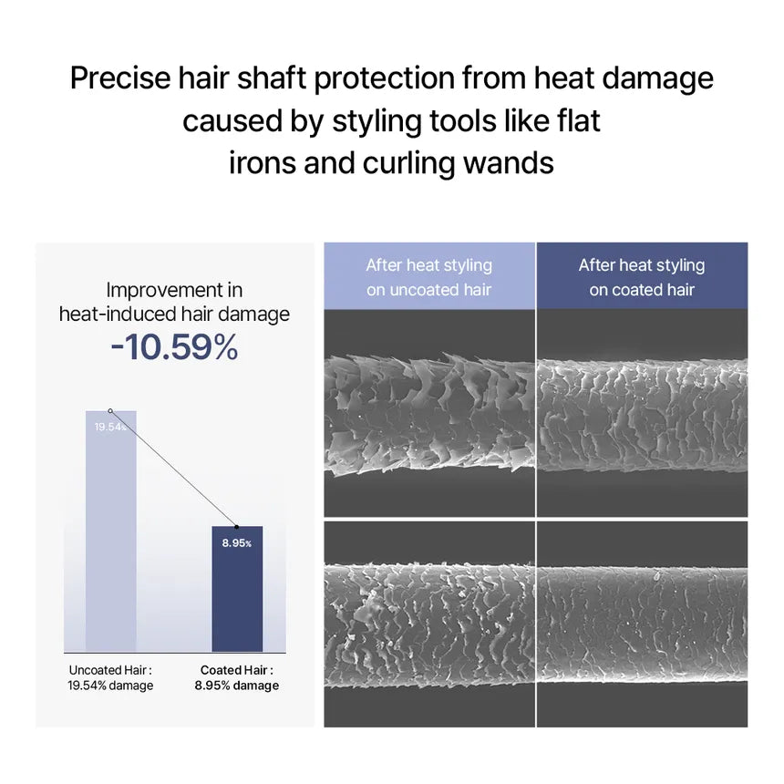 Inhibe el daño capilar causado por dispositivos de calor y lo protege de temperaturas de 230 grados. La tecnología especial de protección térmica de growus activa un ingrediente proteico de alto peso molecular para proteger el cabello de las altas temperaturas.