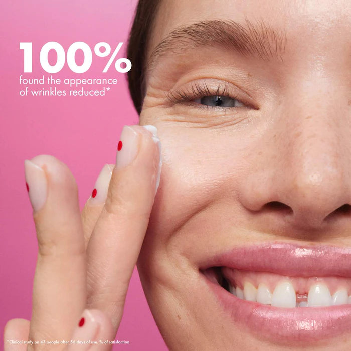 Qué más necesitas saber: Esta crema redensificante, con su textura suave y fundente, enriquecida con péptidos y ácido hialurónico, hidrata y suaviza la piel. Día tras día, la apariencia de las arrugas se reduce visiblemente. Después de un mes, la piel luce visiblemente mejorada y con un aspecto más joven.