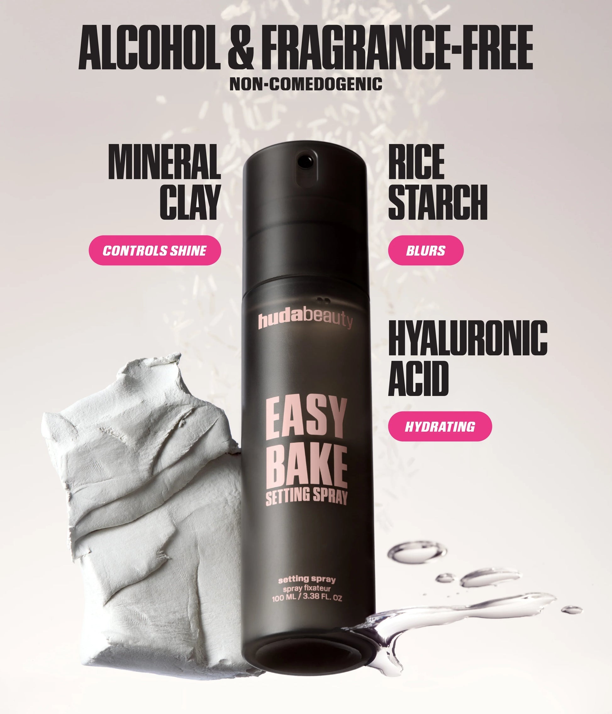 Para preparar la base de maquillaje, utiliza la prebase, una fórmula gelatinosa rosa que suaviza visiblemente los poros y las texturas irregulares. Enriquecida con polímeros difuminadores, glicerina y extracto de cardo mariano, nutre la piel para que el maquillaje posterior se mantenga en su lugar. Para fijarlo hasta 16 horas, aplica el spray fijador, una bruma fundente con ácido hialurónico para nutrir la barrera y arcilla mineral para absorber el exceso de grasa.