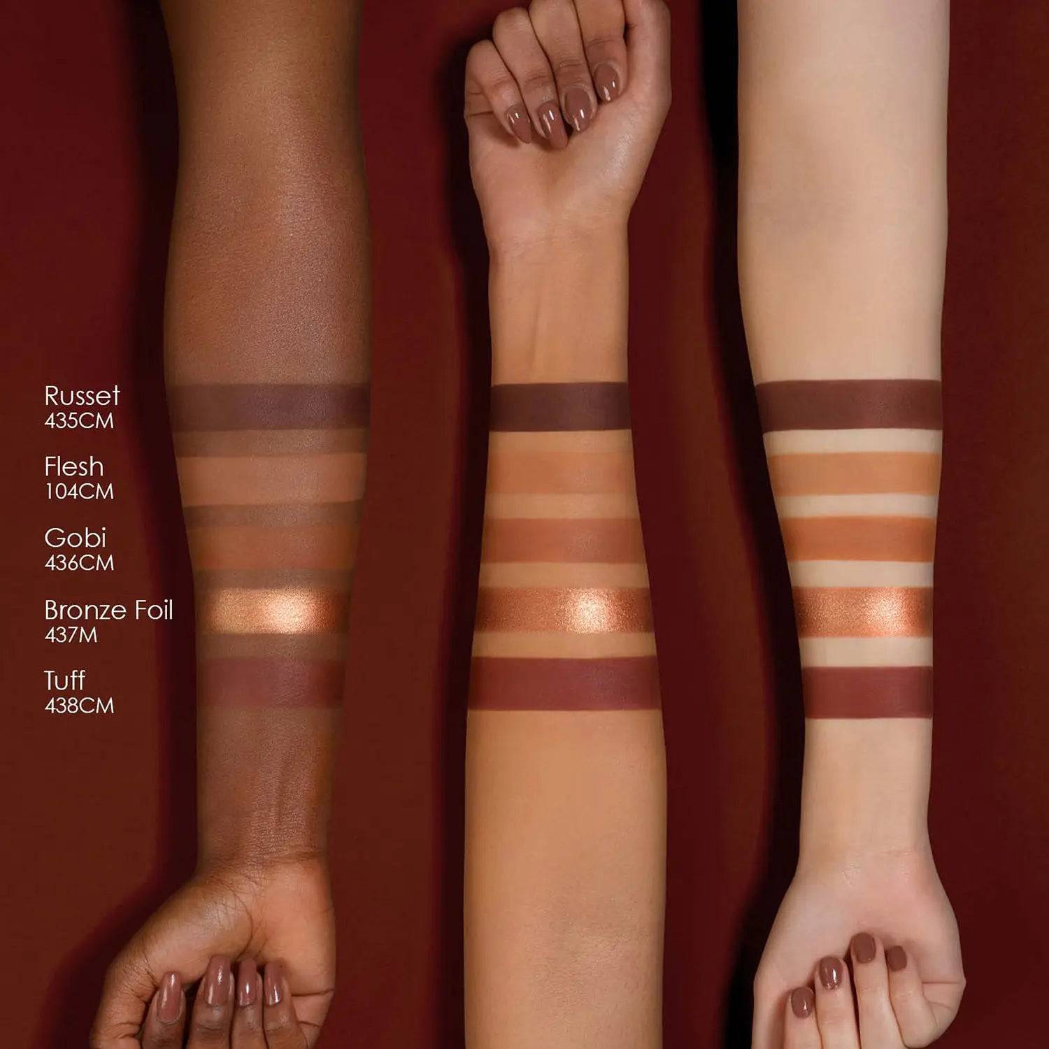 MINI BRONCE EYESHADOW PALETTE presenta 5 tonos neutros de tonos cálidos en acabados cremosos mate y metálicos.